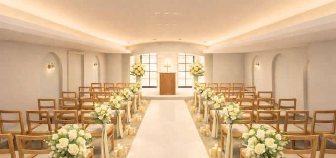 祭壇奥から優しい自然光が降り注ぎ、明るさがよりいっそう引き立つチャペルへと生まれ変わります