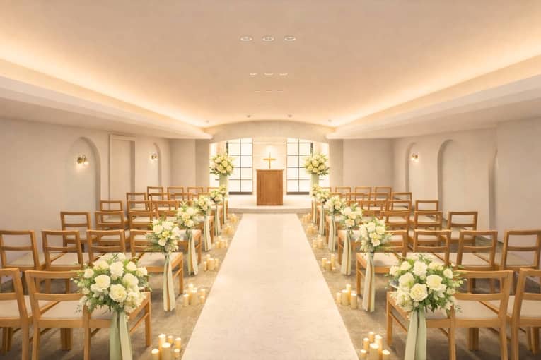 祭壇奥から優しい自然光が降り注ぎ、明るさがよりいっそう引き立つチャペルへと生まれ変わります
